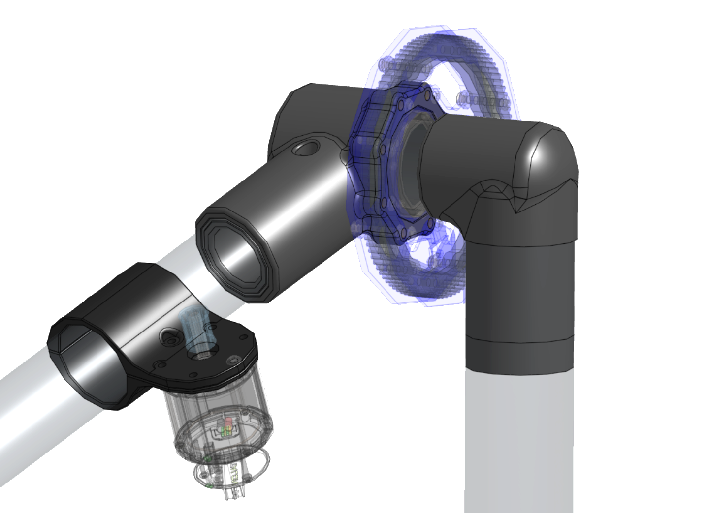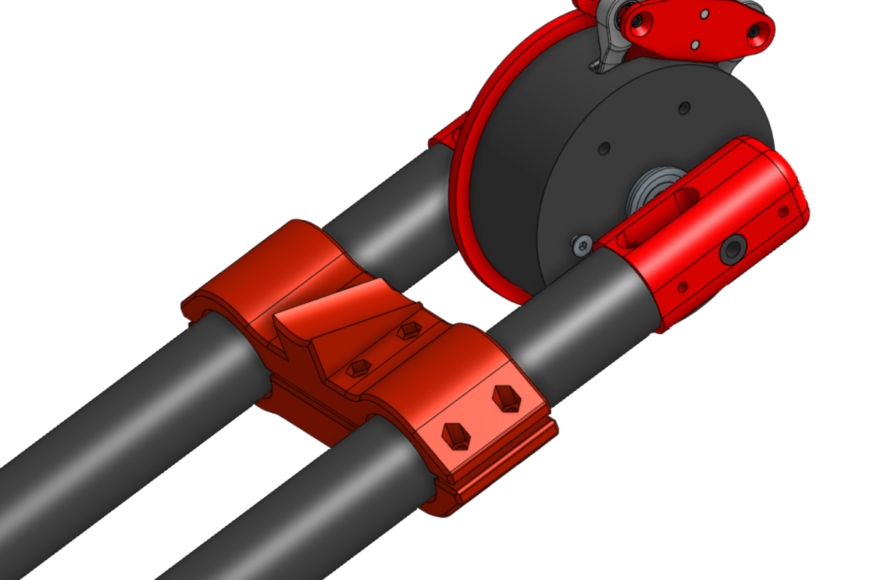 This example above is a perfect use case for 3D printing because it allows for a very precise arm resting angle to be set. This is beneficial for programming to ensure the arm starts in the same position every match. The split design of the part is very beneficial as it can more securely clamp the tubes, with the added benefit of being easier to replace. By splitting the part, each piece will have a flat surface that can be oriented down when printing reducing the amount of supports required.