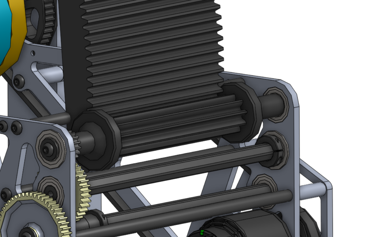 Tooth Strength: Using a lower diametral pitch (fewer teeth per pitch circle length) will make the teeth thicker, in turn making the gear stronger. Both of the above principles were used by 2910 in this example of their 2022 shooter hood.