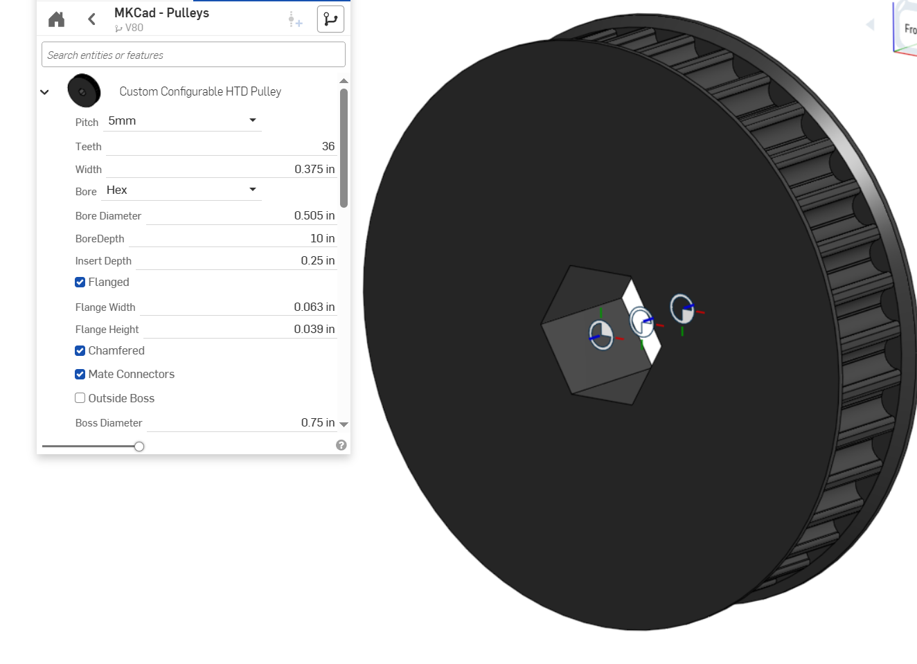 Hex Shaft Inserts: Compared to metal, plastic is relatively soft and can be worn down over time. High amounts of torque from a hex shaft (especially Thunderhex, which has rounded edges) can turn the hexagonal hole of a 3D printed pulley into a round hole, eventually eliminating power transmission between the shaft and pulley. One way to fix this is by using metal inserts that help to distribute the forces of the hex shaft into the printed part away from the hex bore.