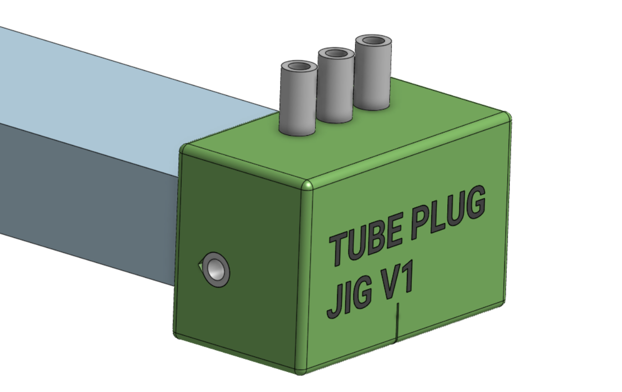 3D printing can also be used to make precise jigs and fixtures for common operations. In this example below the jig is used to make holes for a tube plug that need to be exactly 0.5” from the end of a tube.