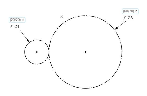 It's recommended to input the pitch diameter fraction (Eg: (60/20)") rather than the calculated pitch diameter (Eg: Only inputting 3" as the dimension) so that you can easily see what the circle represents (a gear, sprocket, or pulley) and how many teeth it has.