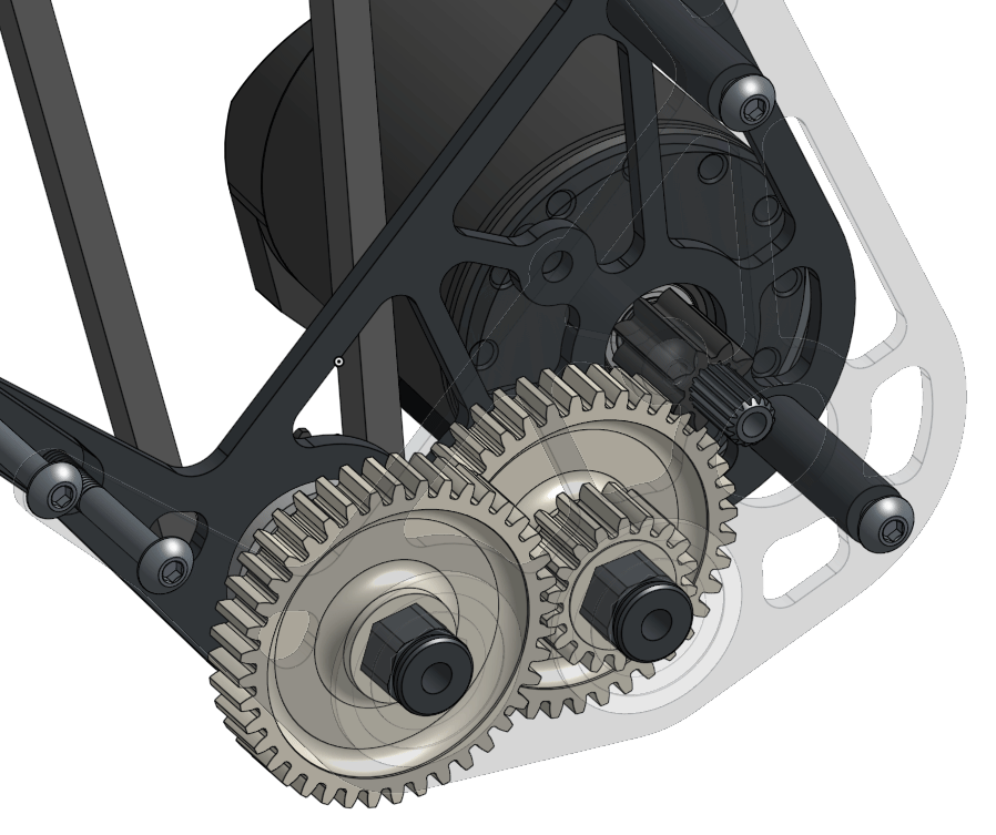 In FRC, the three most common types of power transmissions are gears, chain and sprocket, and belt and pulley. Although they all achieve the same end result of changing speed and torque, they each excel in different situations. In the following sections you'll be introduced to each of them and how to model them.