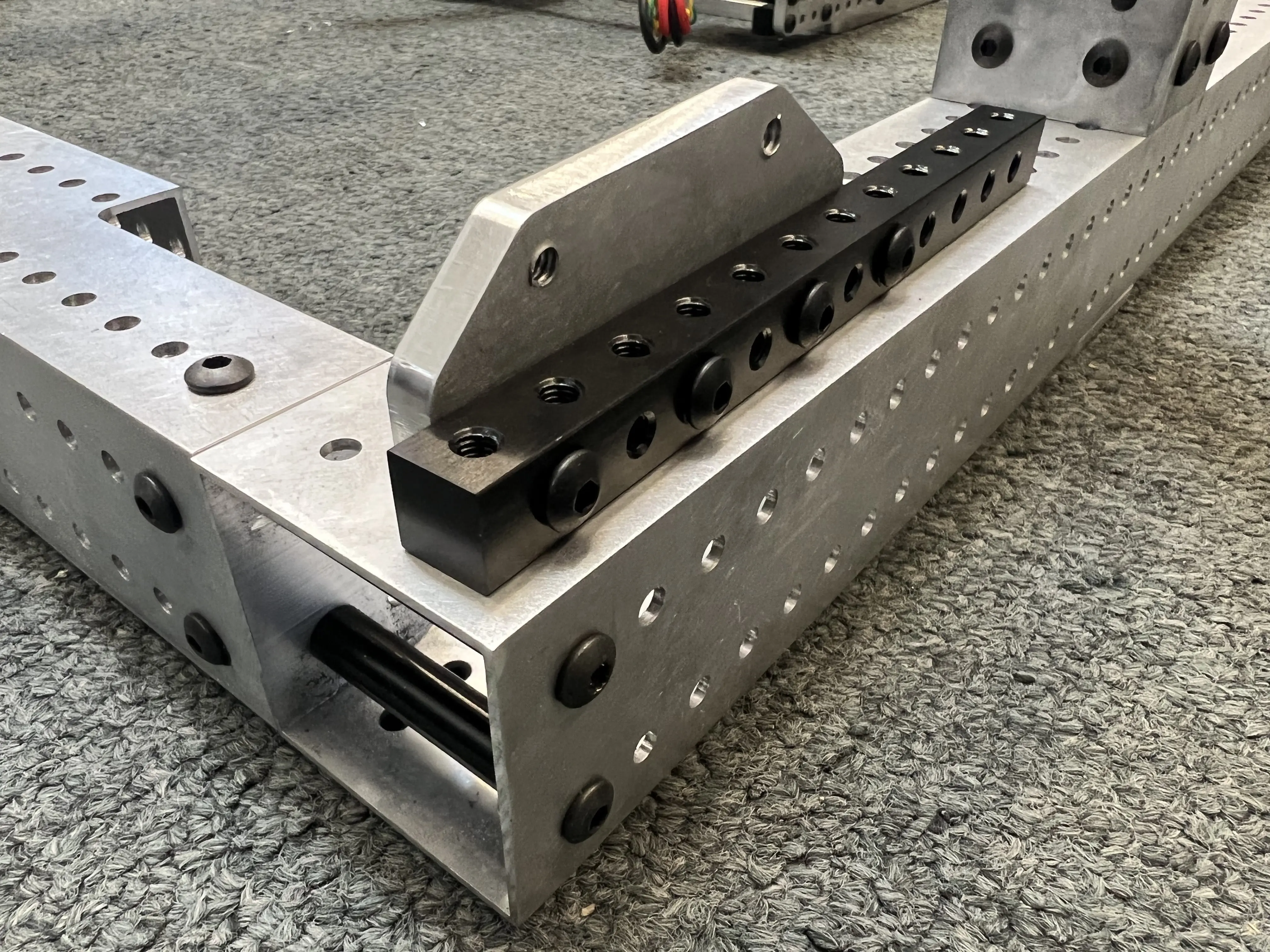 Nut strips are a very versatile structural component often used to connect perpendicular plates or a plate to a tube. Vendors like WCP, REV, and Last Anvil carry nut strips in 6" long segments with either #10-32 or #8-32 tapped holes. These nut strips are very robust and can be easily cut to any length. In the exercise you just completed, the nut strips would allow you to easily mount the shooter onto any surface.