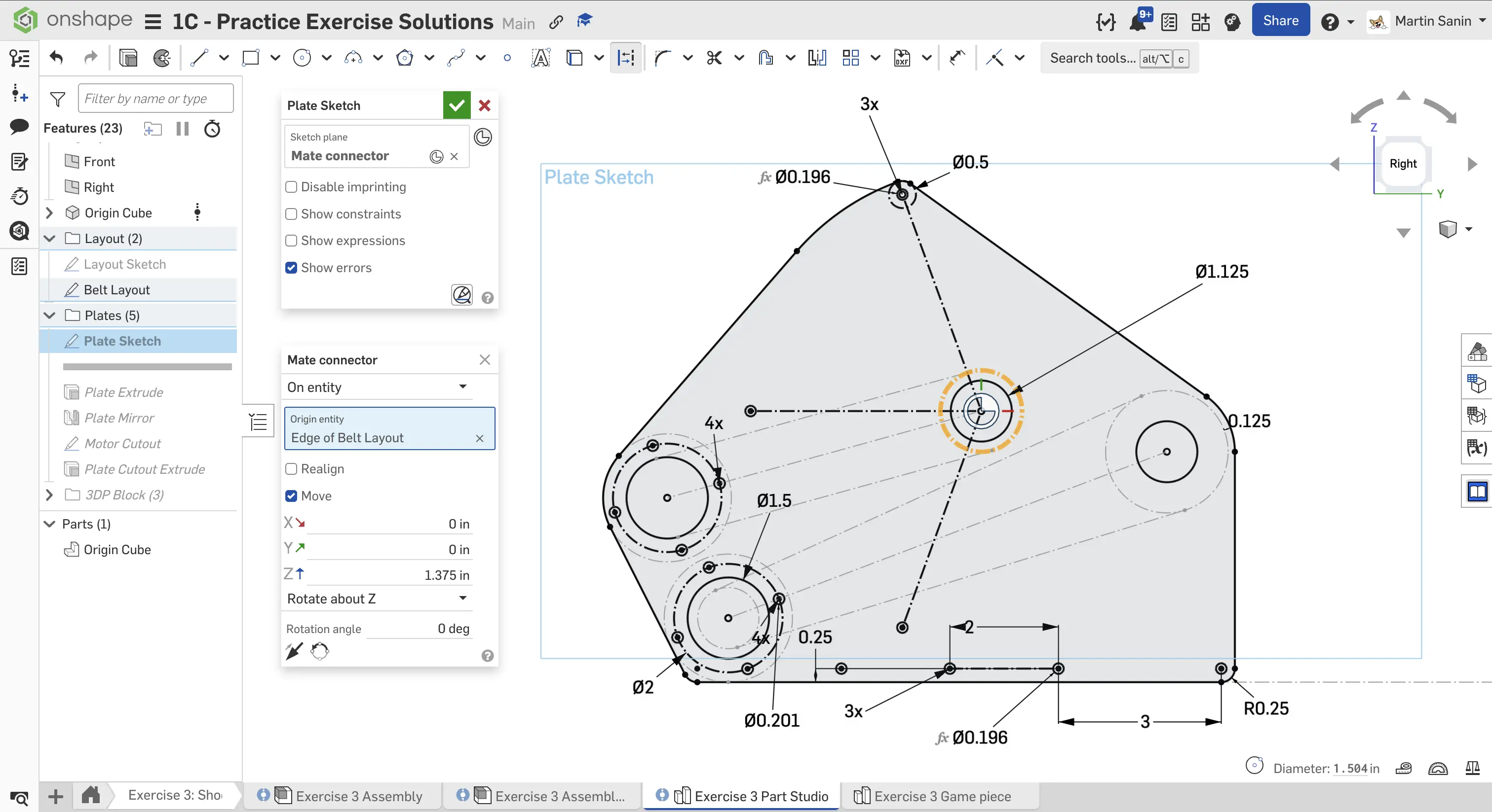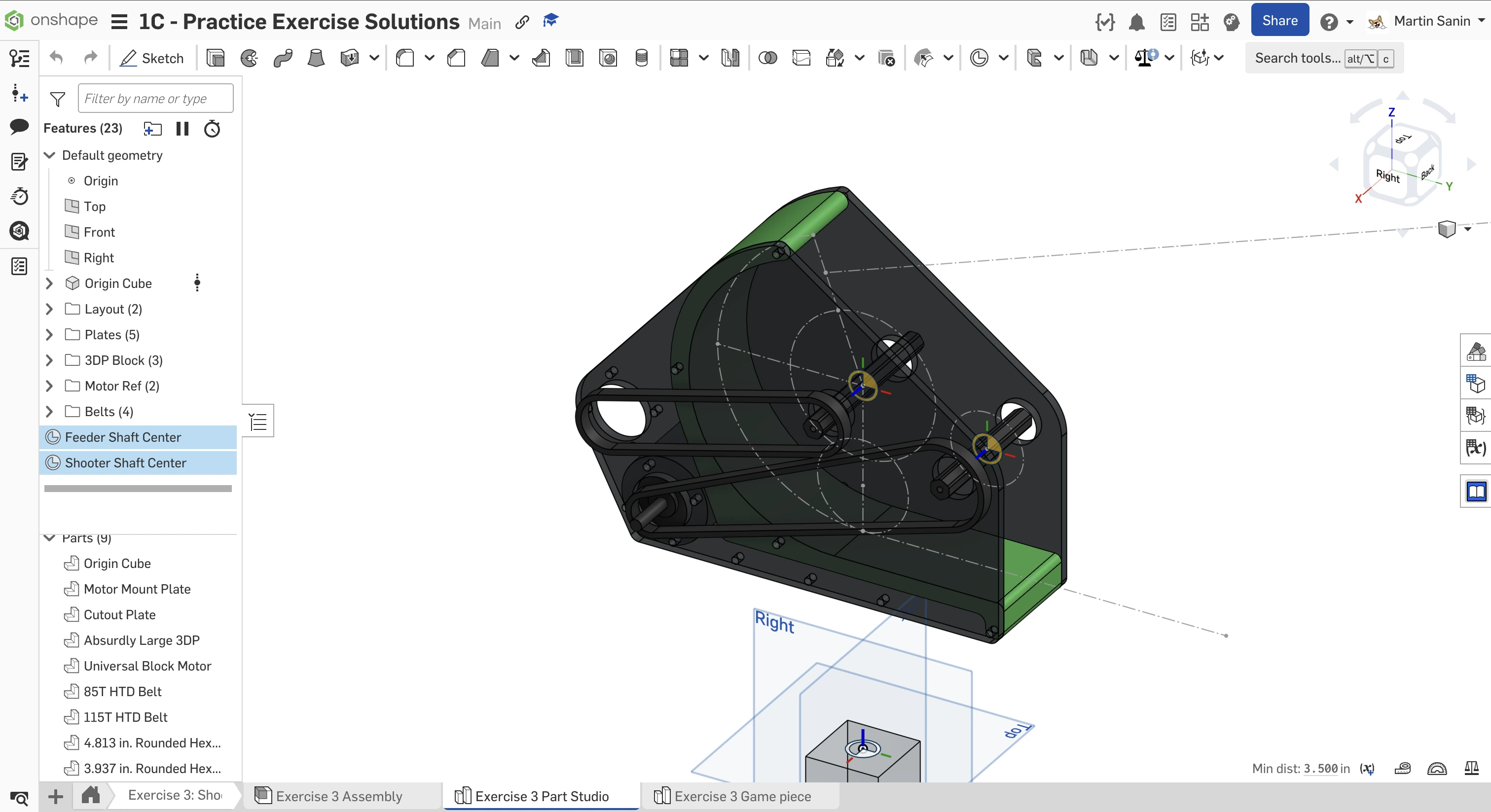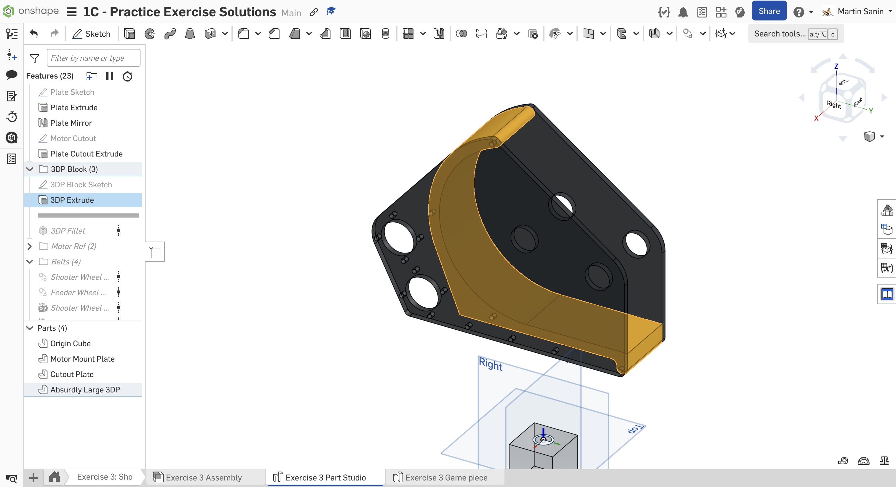 Navigate to the "Exercise #3 Part Studio" tab in your copied document and follow the instructions in the slides to complete the part studio for this exercise.