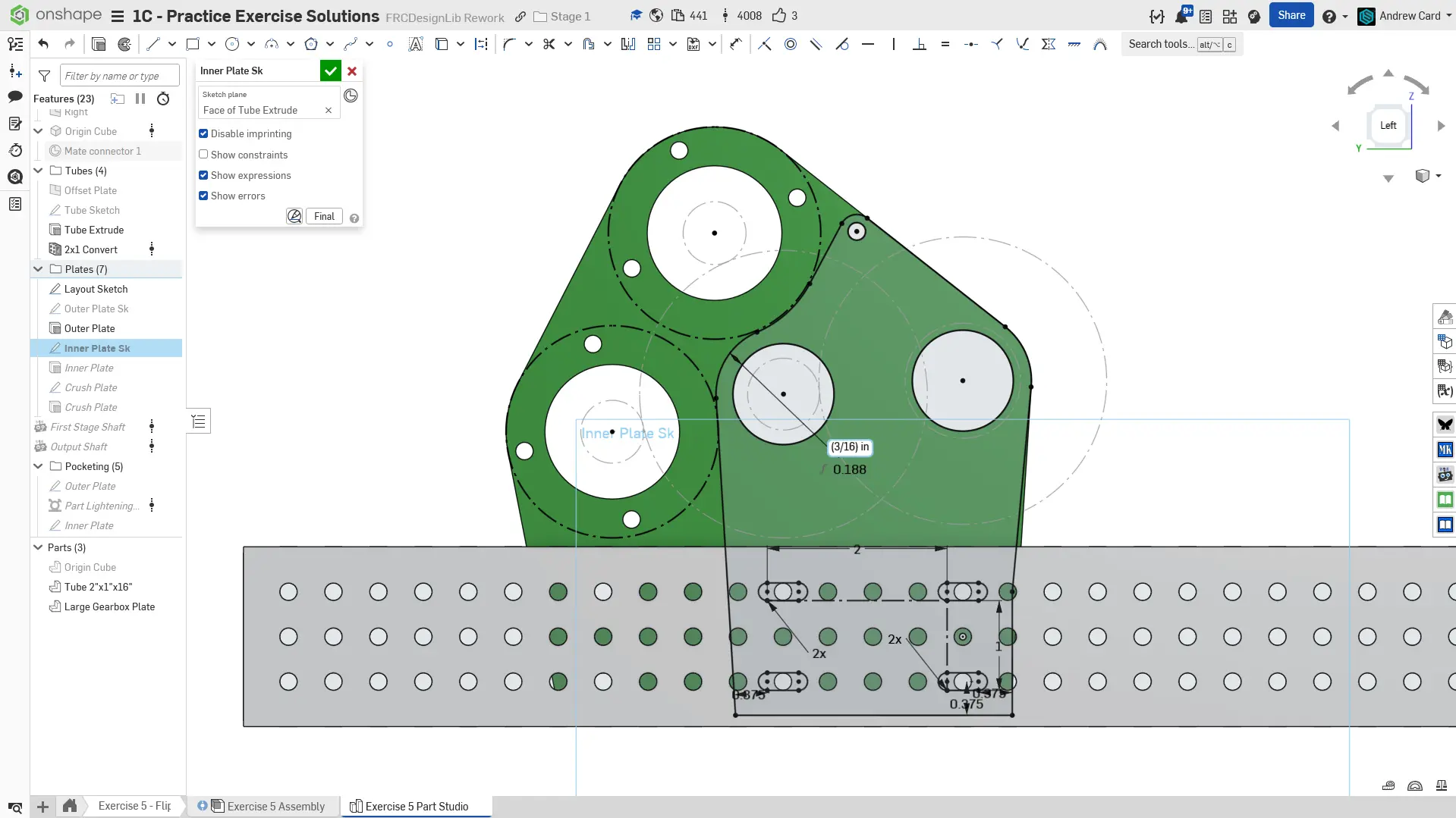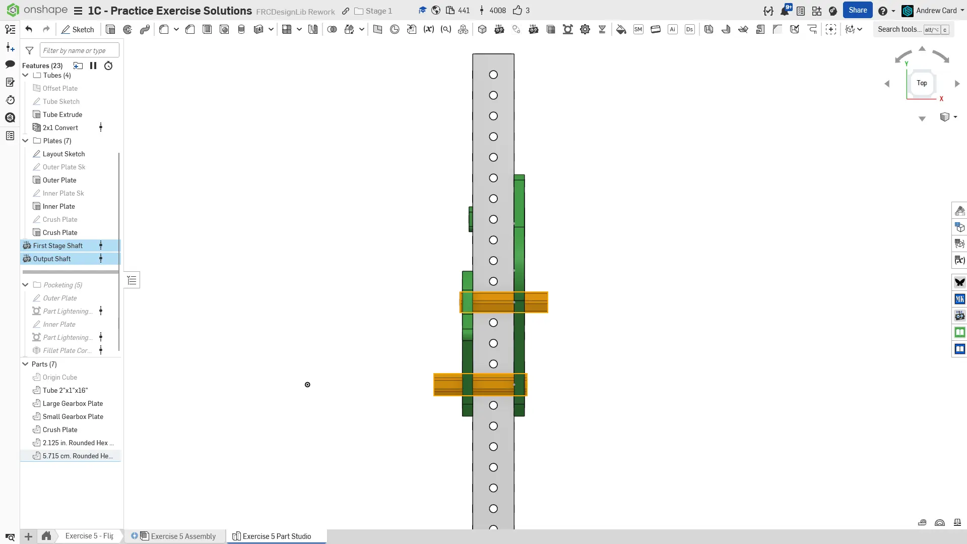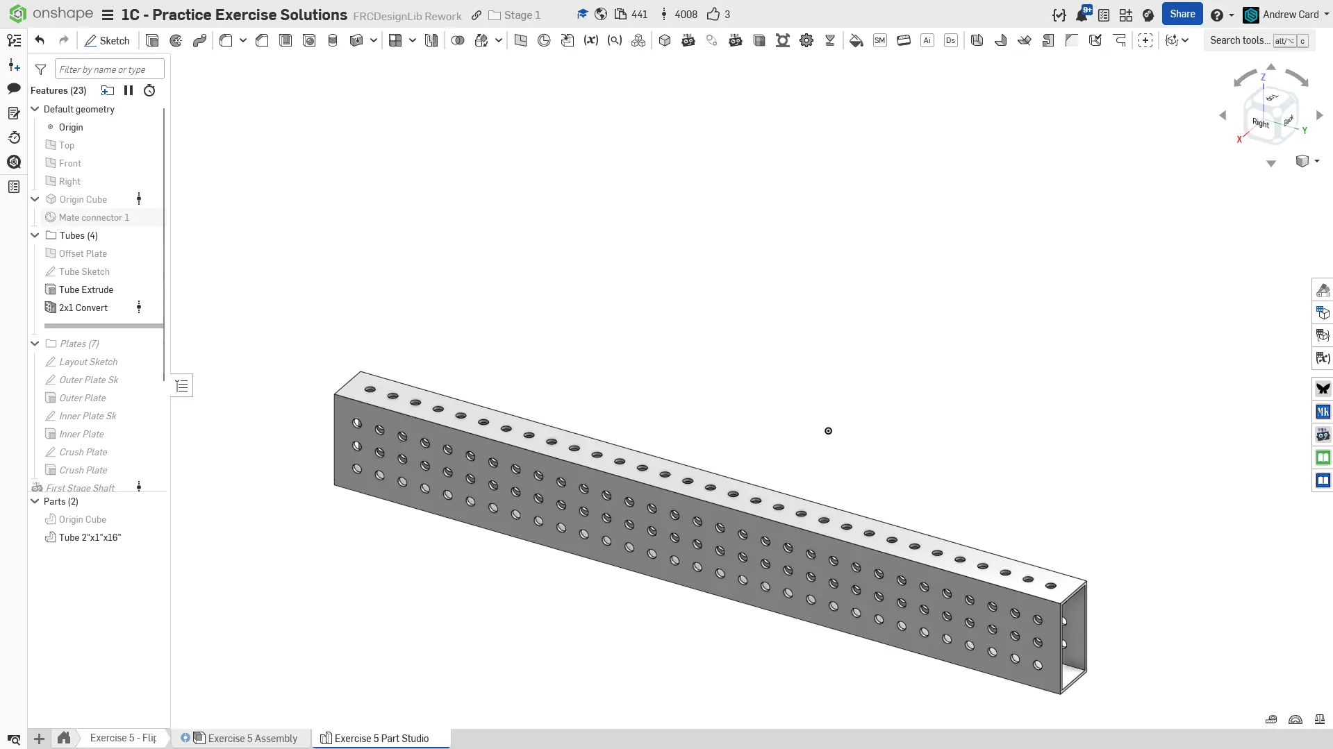 Navigate to the "Exercise #5 Part Studio" tab in your copied document and refer to the solution document to complete the part studio for this exercise. The following instruction slides only provide a general outline and some key details.