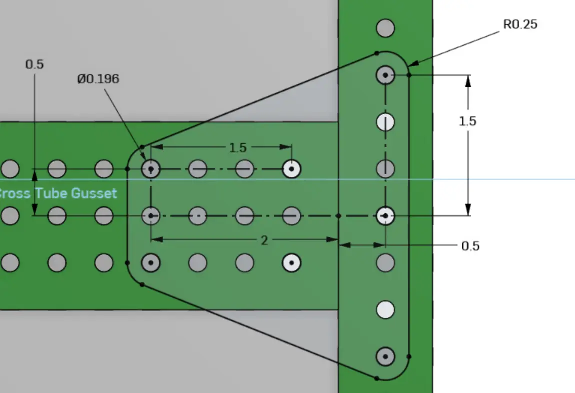 When you project the holes off of the tube or use the gusset featurescript, those references can break easily if the tube converter or length of the tube gets changed. Try to dimension manually defined holes from the edge of the tube or only project one hole and use a linear pattern to minimize the amount of things you need to fix if something changes.