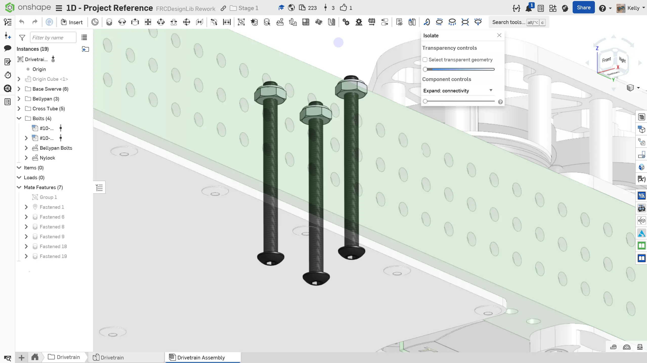 Start by navigating to the Drivetrain Part Studio in the Drivetrain folder. Follow the instructions in the slides to add the gusset.